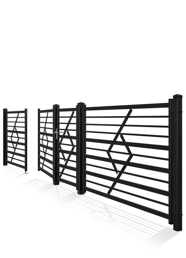 Système de clôture: portillon, portail à deux battants, segment